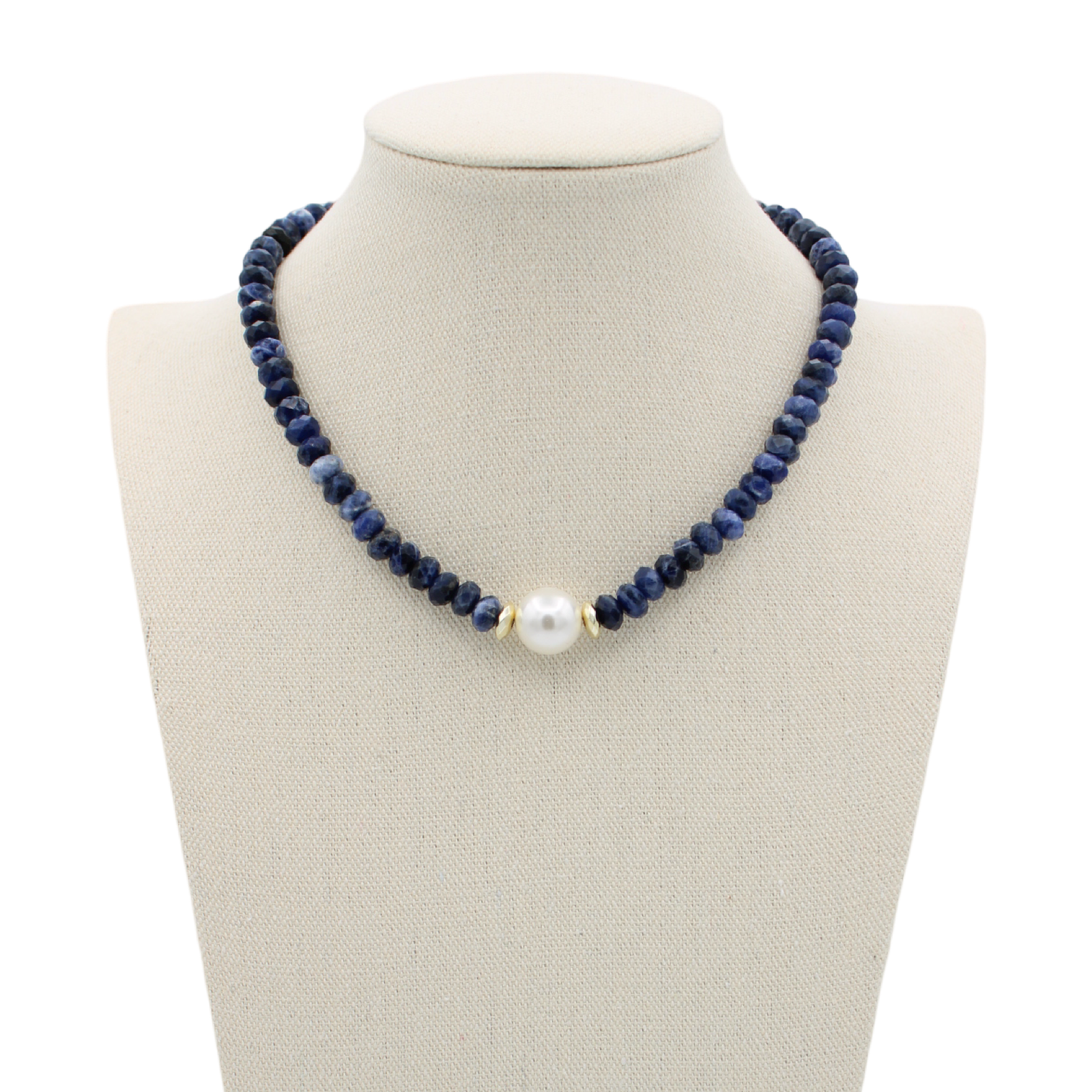 This stunning necklace features a unique combination of sodalite beads and mother of pearl, creating a one-of-a-kind look. The sodalite beads add a touch of sophistication, while the mother of pearl adds a playful and unexpected element. Elevate any outfit with the Azul Pearl Necklace!