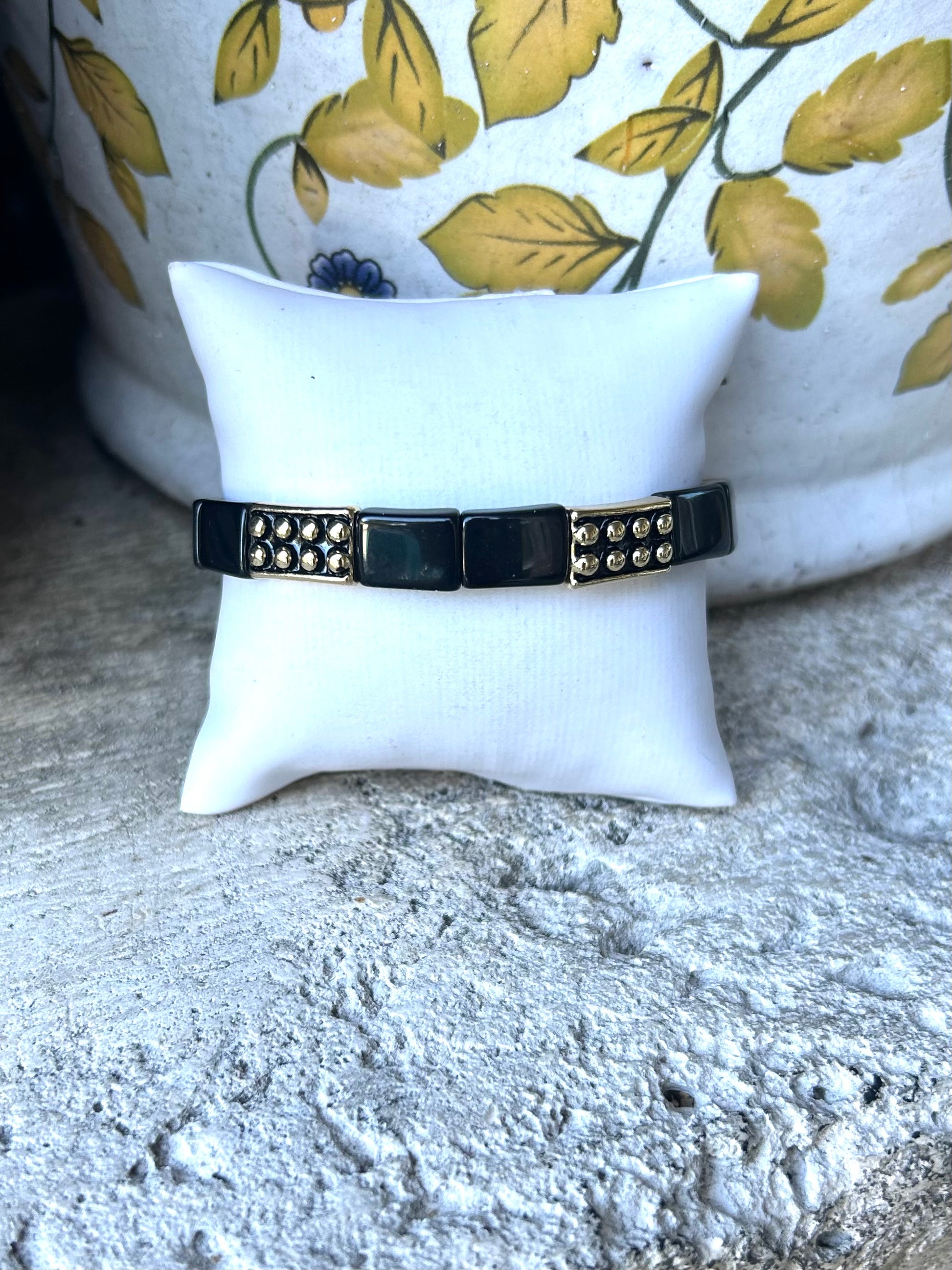Add a touch of sparkle to your wrist with the Baylee Black Stretch Bracelet. Featuring sleek black stretch material for a comfy fit and dazzling gold accents that catch the light perfectly.