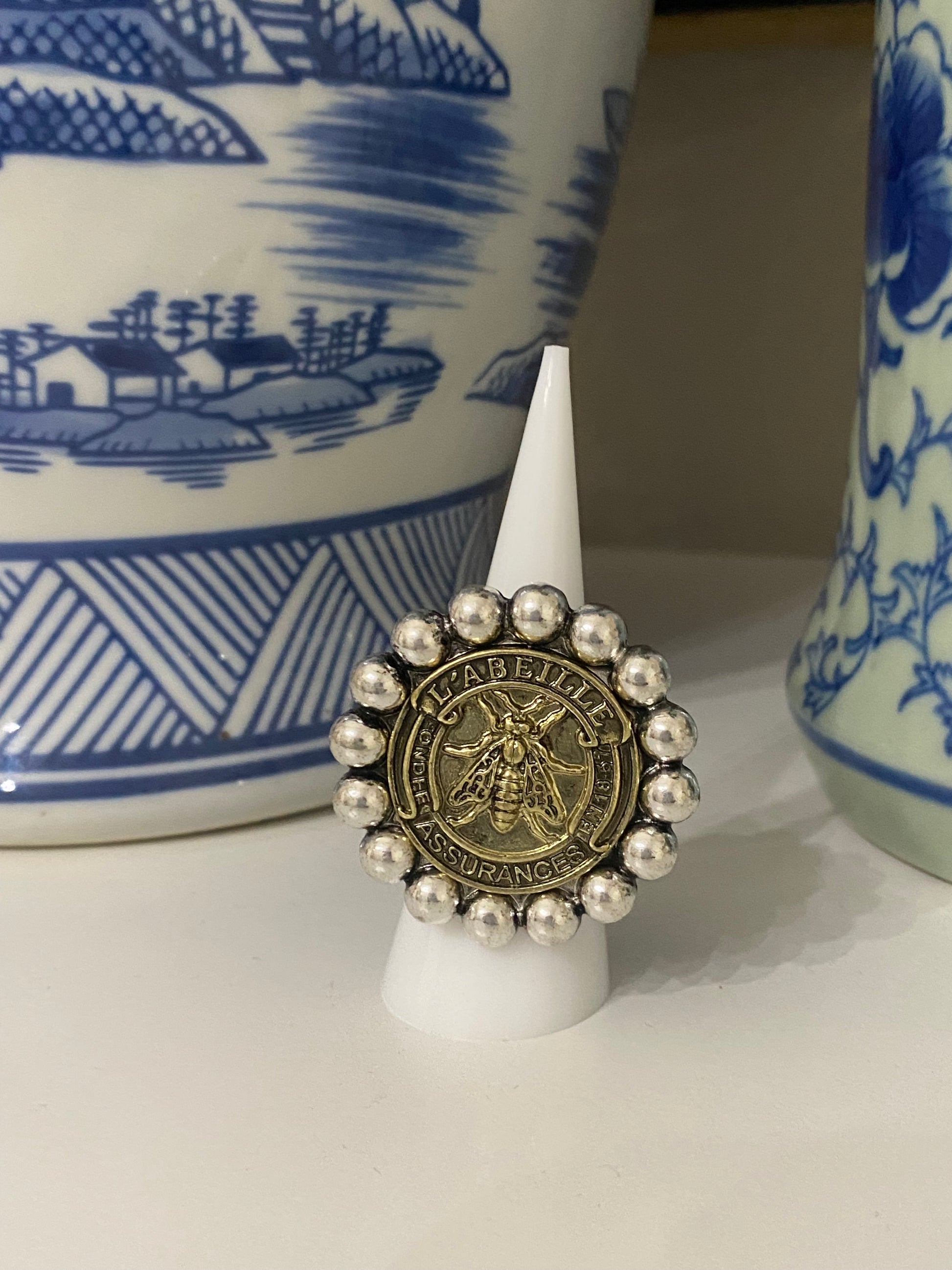 Add a touch of whimsy to your look with this Bee-utiful Two Tone Ring. Featuring a charming round coin centerpiece adorned with a bumblebee, it’s surrounded by delicate silver beads for extra sparkle.