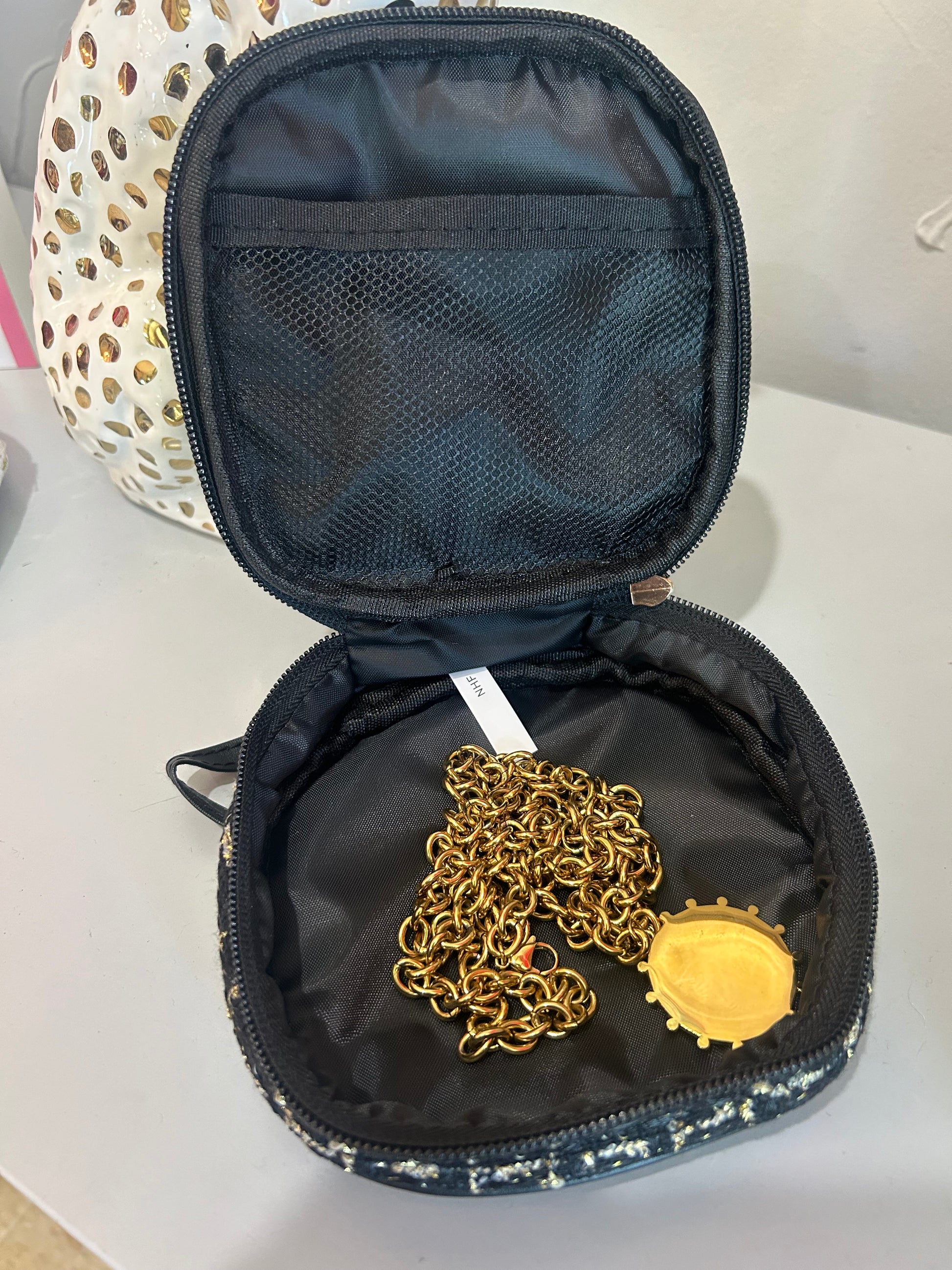 Elevate your everyday carry with this chic black tweed makeup bag—the perfect companion for touch-ups on the go or organizing your favorite jewelry pieces. The durable tweed exterior brings timeless texture and sophistication, while the secure zipper closure keeps your essentials safe and sound.