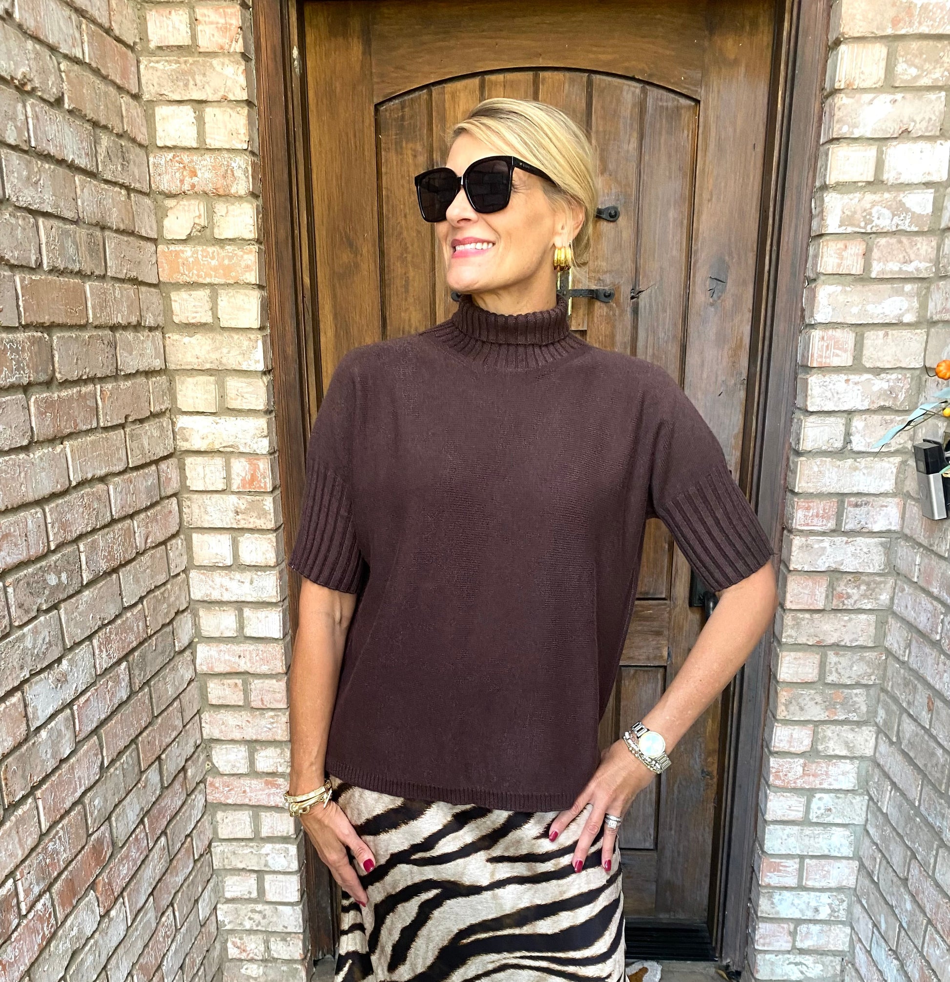 Rib contrast short sleeve knit top Upgrade your wardrobe with our rib contrast short sleeve knit top. Its unique rib construction offers a stylish contrast and modern texture. Made with premium materials, this top ensures comfort and durability. Perfect for any occasion, it's a versatile addition to your wardrobe.