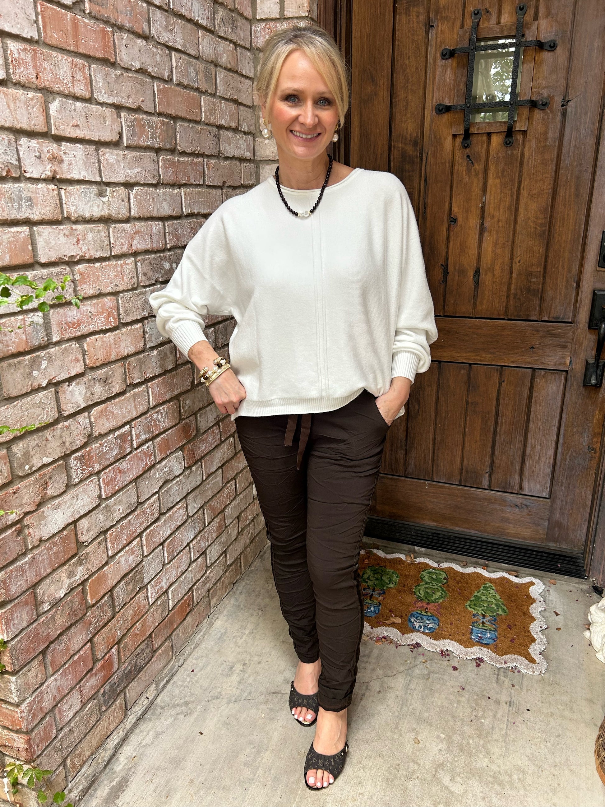 Step up your style game with the Chocolate Joggers, featuring a chic ribbon pinstripe that effortlessly blends comfort and class. Dress them up with heels or boots for a night out, or keep it casual with your favorite sneakers for daytime fun. Perfect for playful days when you want to look sharp without sacrificing coziness.