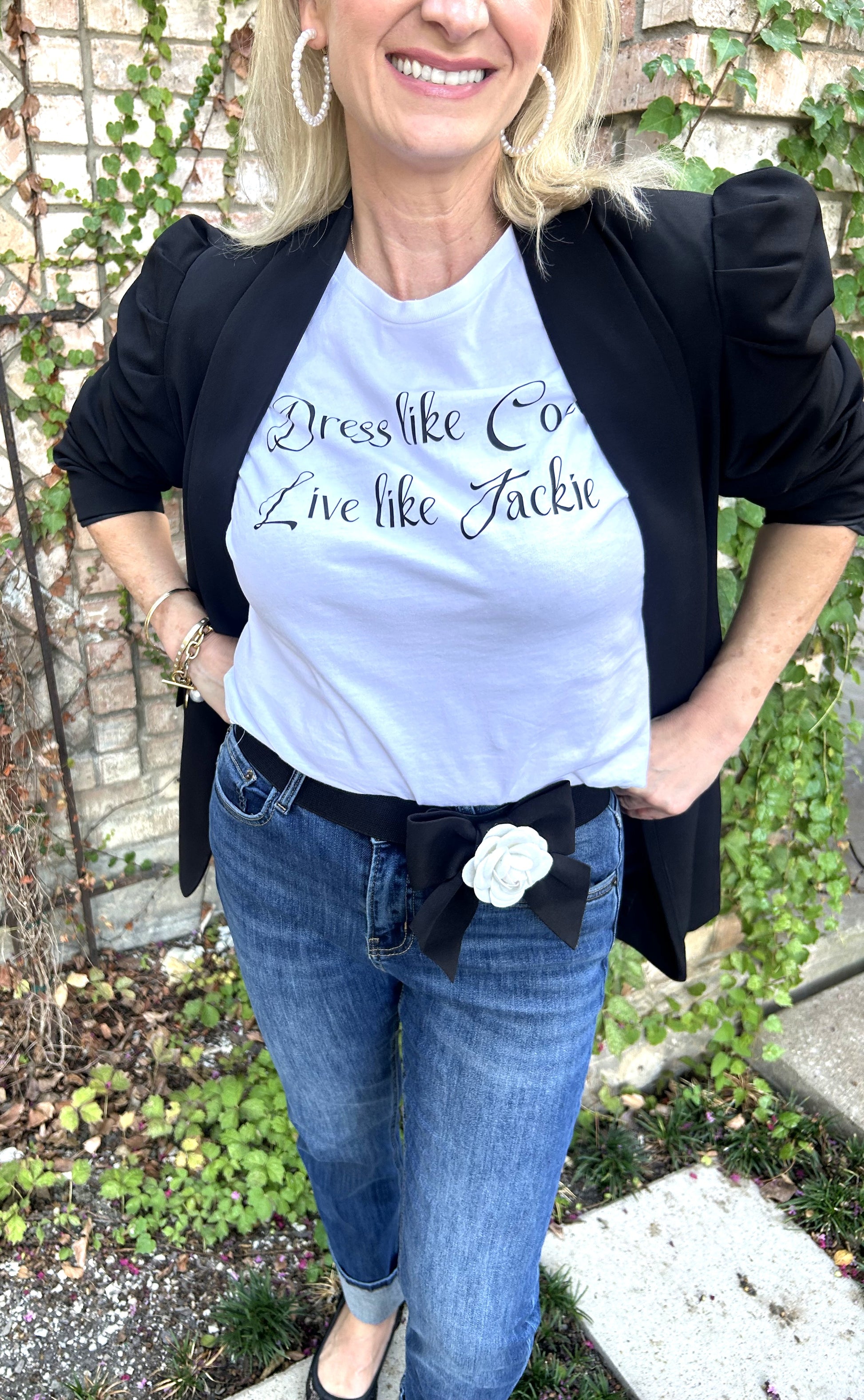 Get chic and timeless style with our Fashion Statement Tee - a designer-inspired fashion tee shirt that exudes classic charm. Whether you're out on the town or lounging at home, this tee is the perfect addition to any outfit! Wear this with short, jean, skirt or throw a blazer over it for some sophisticated style