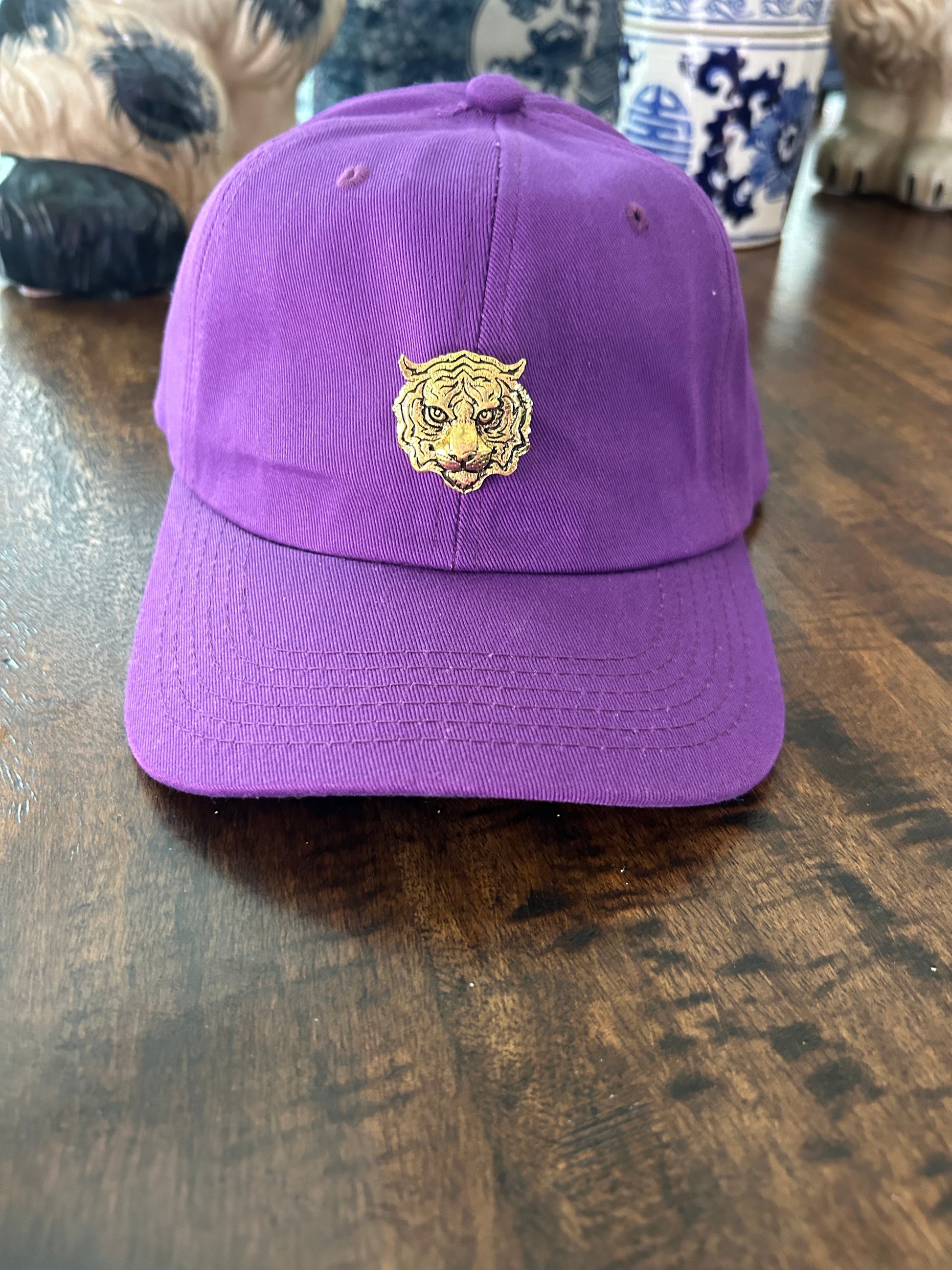 Show your team spirit with the Gameday Tiger Cap in bold purple, featuring a striking gold tiger pin design. This playful cap adds a fun pop of color while keeping you cool and comfortable during the big game. Perfect for cheering from the stands or casual outings, it’s a winning accessory for any tiger fan.