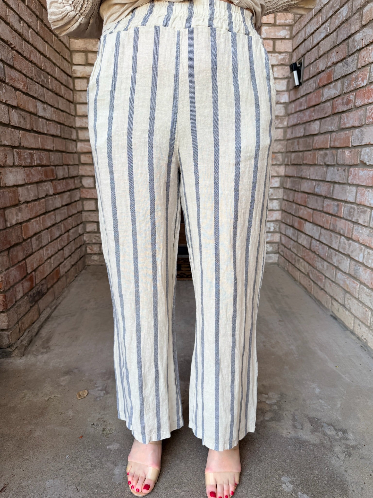 Perfect for pairing with a linen blouse, crisp tee, or casual top, the Linen Weekend Striped Pant is your go-to for effortless, elevated summer style. 🌿✨