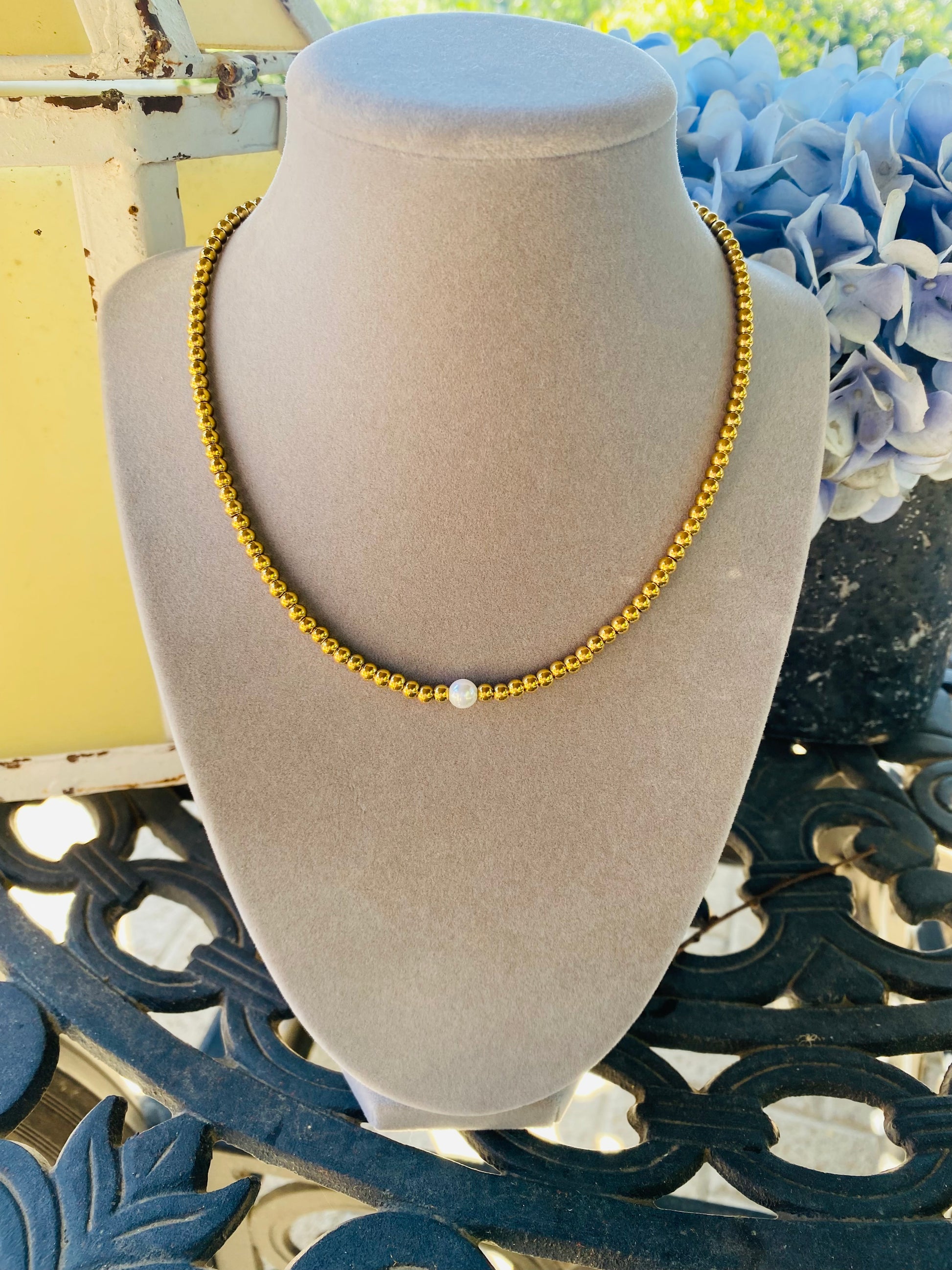 Elevate your style with the Lizzie Necklace, featuring delicate beads and a refined small pearl centerpiece. This elegant design effortlessly adds a touch of sophistication to any outfit, perfect for both everyday wear and special occasions.