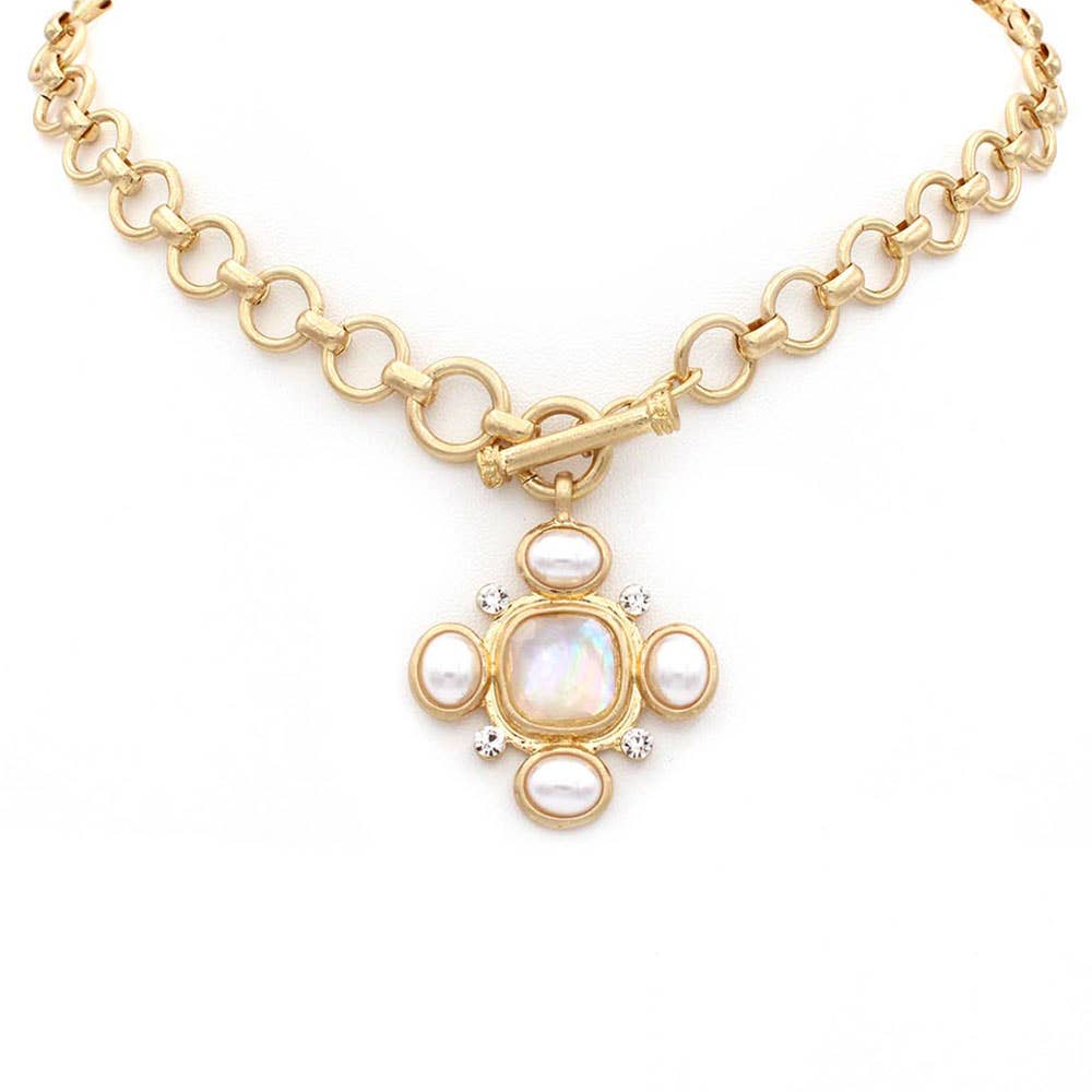 - Featuring a gold link chain with a front toggle clasp, it’s easy to wear and adjust.