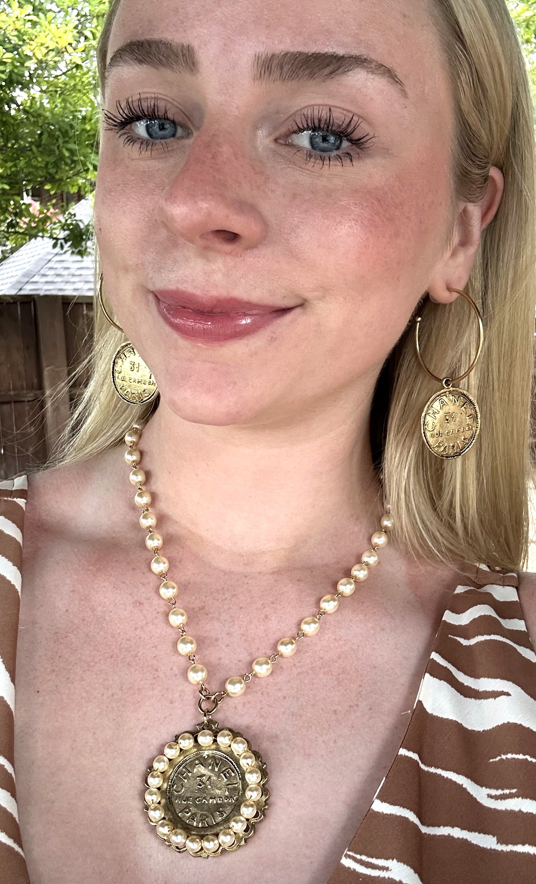 - Paris and french designer inspired coin adorned with pearls the other side is basic coin