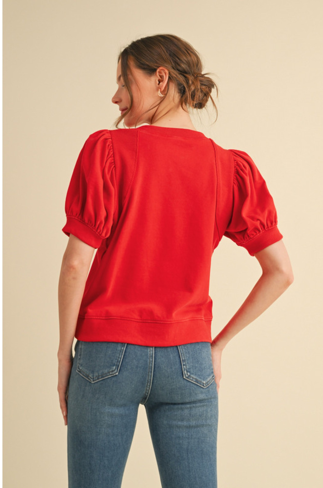 Elevate your casual look with this red chic sweatshirt that cleverly mimics the elegance of a blouse. Its playful design blends comfort and style, making it perfect for dressing up or down. Feel effortlessly polished while staying cozy all day long.