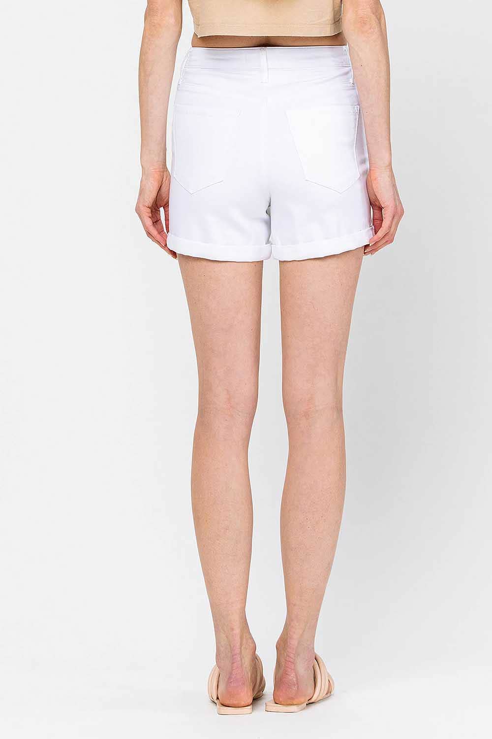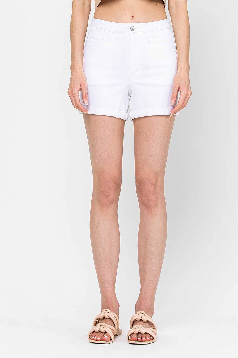 Get ready for summer with the Willa White denim short. Made from a comfortable blend of cotton and spandex, these cuffed shorts are perfect for any warm-weather occasion. if you want to get more coverage unroll the cuff. From picnics in the park to beach trips, these shorts are a versatile and stylish addition to your wardrobe.