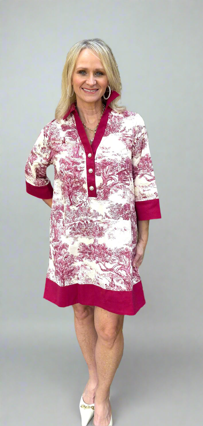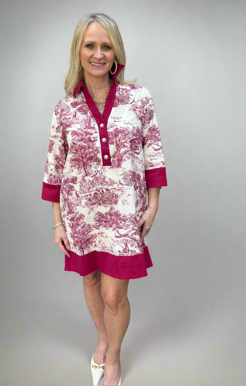 - Cranberry Pink and beige toile