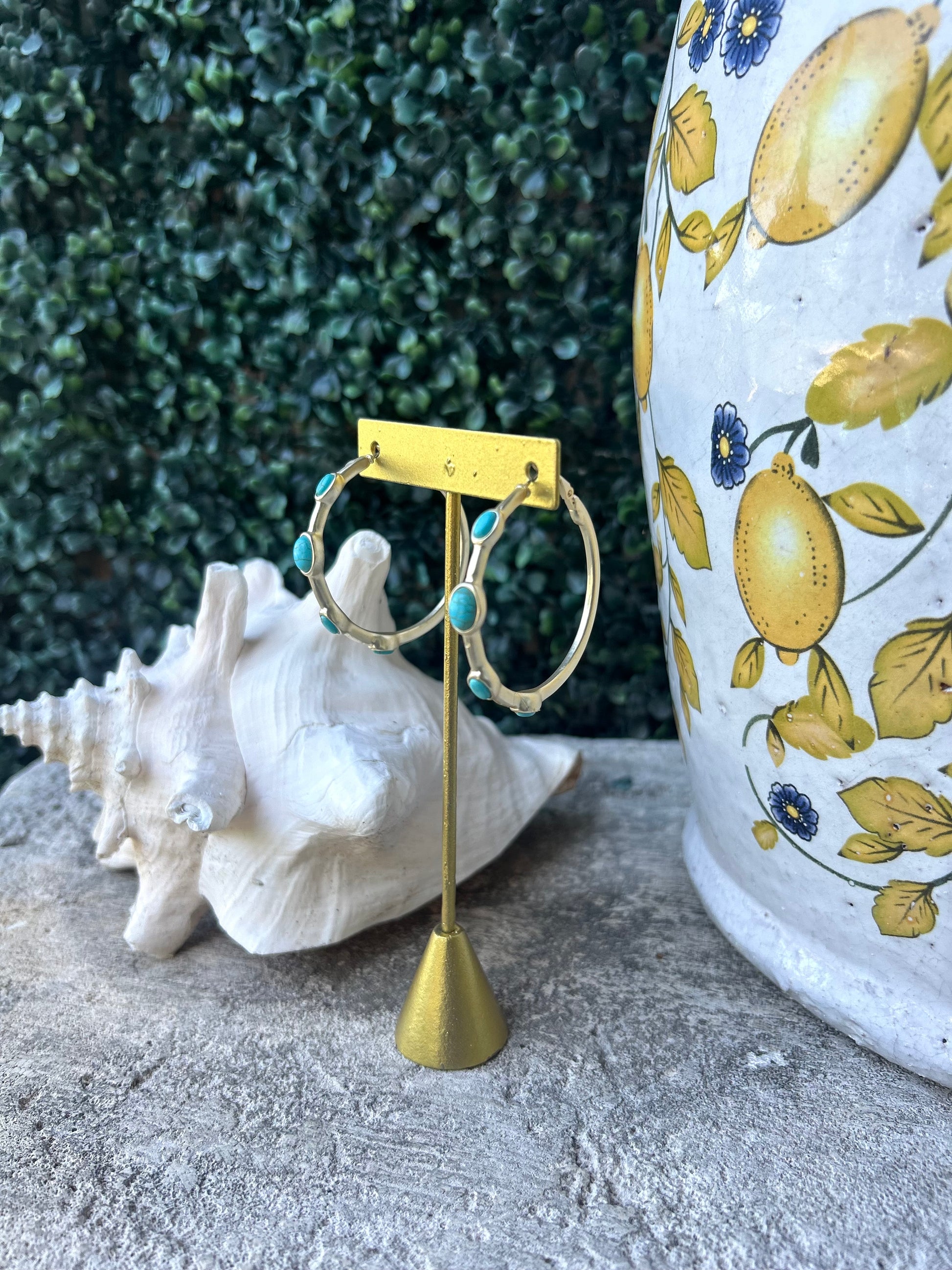 Add a pop of color and fun to any outfit with the Tia Turquoise Earring. This playful gold hoop features a vibrant turquoise accent that catches the eye and brightens your look.